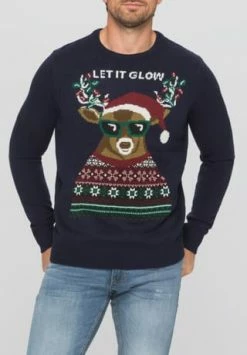 MANGUUN Weihnachtspullover, Rundhals, Für Herren 1. EVENING BLUE