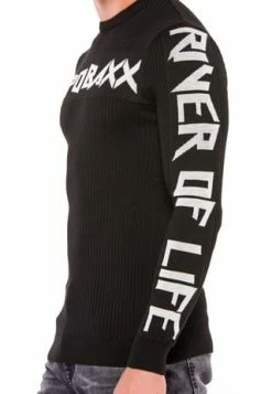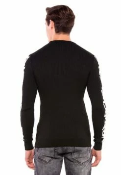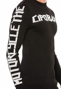 Schickes, figurbetontes Longsleeve für Herren im Biker-Look, gefertigt aus feinem Rippstrick, für einen gemütlichen Tragekomfort – jeden Tag. Besonderes Highlight bieten die Schriftzüge auf den Ärmeln und auf der Brust. Typisch Cipo & Baxx!