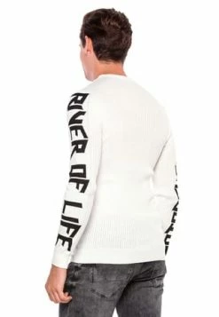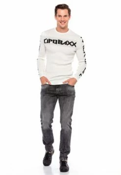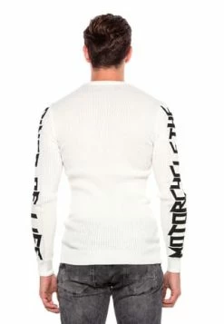 Schickes, figurbetontes Longsleeve für Herren im Biker-Look, gefertigt aus feinem Rippstrick, für einen gemütlichen Tragekomfort – jeden Tag. Besonderes Highlight bieten die Schriftzüge auf den Ärmeln und auf der Brust. Typisch Cipo & Baxx!