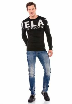 Eleganter Cipo & Baxx Pullover mit RELAX-Statement – für alle Anlässe und Gelegenheiten dank hochwertigen Materialien und diversen Kombinationsmöglichkeiten geeignet. Fühle dich jederzeit gut und stilvoll gekleidet – im Büro, bei der Familie oder beim bevorstehenden Date.