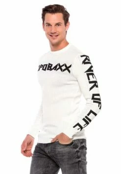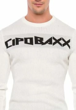 Schickes, figurbetontes Longsleeve für Herren im Biker-Look, gefertigt aus feinem Rippstrick, für einen gemütlichen Tragekomfort – jeden Tag. Besonderes Highlight bieten die Schriftzüge auf den Ärmeln und auf der Brust. Typisch Cipo & Baxx!