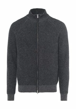 abgerundet wird das harmonische Gesamtbild durch die melierte Gestaltung und den sportiven Stehkragen
