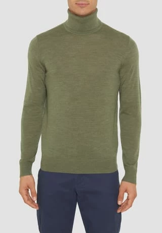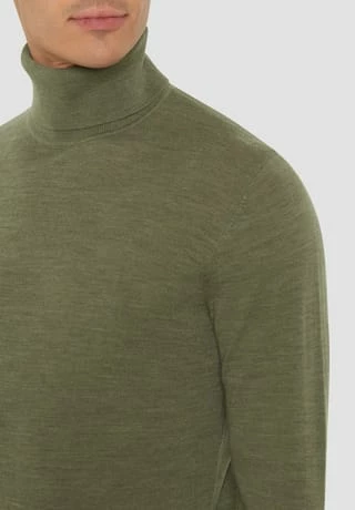 mit hochgeschlossenem Rollkragen und langen Ärmeln