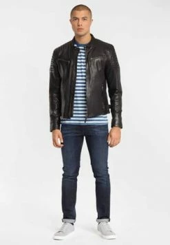 Bei diesem sportlichen Biker liegt das Besondere in den Details. Neben der Akzentuierung durch Reißverschlüsse an Taschen und Ärmeln zählt die markant wattiert-gesteppte Schulterpartie, die den Oberarmbereich im Speziellen betont, zu den Hinguckern. Dieser Stil findet sich nochmals im unteren Rückenbereich wieder. Die Riegel am seitlichen Bund lassen sich komfortabel verstellen und gewährleisten eine verbesserte individuelle Passform.