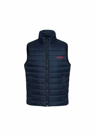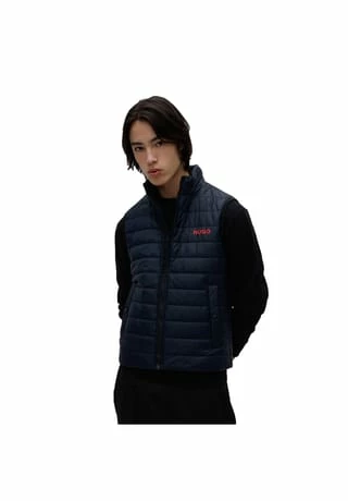 Ärmellose Jacke für Herren von der Marke HUGO by HUGO BOSS. Wasserabweisendes Material, leicht gefüttert und abgesteppt, Zipper, Stehkragen, Logo-Print.