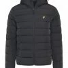 Die sportlich-elegante Jacke von Lyle & Scott verleiht deinem Casual-Outfit einen unaufdringlichen Style. Die Lightweight Padded Winterjacke für Herren punktet mit strapazierfähigem Material, einem schützenden Stehkragen und einer Polyesterwattierung. In den zwei Seiten- und in der Innentasche kannst du Kleinigkeiten verstauen, oder deine Hände wärmen. Abgerundet wird die sportliche Jacke durch das gestickte Lyle & Scott Logo auf der Brust.
