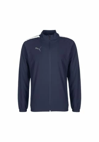 Diese Trainingsjacke ist dein idealer Begleiter am Spieltag und passt perfekt zu den anderen Teilen aus der Puma TeamLIGA-Kollektion. Die Herrenjacke wird aus Recyclingfasern hergestellt für einen geringeren ökologischen Footprint. Dank der dryCELL-Technologie bleibst du trocken und hast einen hohen Komfort. In den seitlichen Taschen kannst du kleine Utensilien sicher aufbewahren. Der Puma-Formstrip auf den Schultern macht den Look komplett.